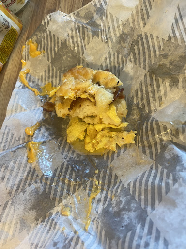 My husband ordered 2 bacon , egg, and cheese biscuits. They were put together sloppy, egg was sliding off one side cheese off the other and when I took the top off to try to fix it, it fell apart, and the eggs were swimming in brown grease. The only thing that wasn’t greasy was the bacon. I was only able to eat about half of it, my dog got the rest. You expect a certain amount of grease, considering what you’re ordering and where you’re ordering it from , but this was ridiculous. My husband said it seemed as if whoever prepared it must have thought to themselves, “Go ahead and dunk these in some more grease just to make sure there’s enough.”