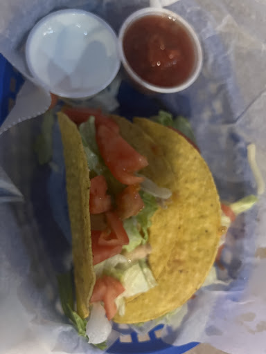 Cheesy Bacon Fries at this establishment lean more towards being homemade potato chips than traditional fries, loaded with cheese, bacon, and ranch. It's important to note that the staff may not have thorough knowledge of the menu items, so exercise caution if you have allergies. In my case, I inquired about cilantro in the salsa due to an allergy, and was assured it was cilantro-free, only to find out later that it contained cilantro. The taco flavor is decent, but falls short of authentic Mexican taste expectations. The chicken taco seemed to consist of canned chicken in a taco shell topped with melted cheese ,lettuces,& tomato with sour cream and cilantro salsa on the side