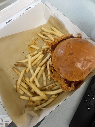 Then the food comes out, my kid asked for mild she got hot, and it made her eyes water and ruined her appetite. Then I got my food, besides the fries being ice cold the burger was covered in grease and was literally dripping with water and grease not to mention the presentation was awful.