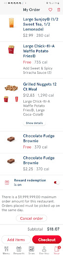 Chick-fil-A is one of the few fast foods I am able to tolerate with a limited diet. My husband and I run UberEats together, and our meal has consistently come from this location every day for about a month and a half.