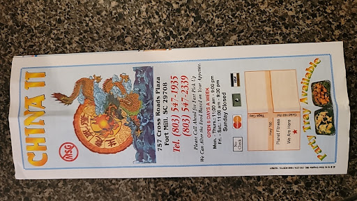 Read moreLet me start off the review just by saying that the food here is phenomenal!!! When it comes to Chinese cusine in the Fort Mill and Charlotte area it doesn’t get better than this place. I got the General Tso Chicken combo, when I got the food it was extremely fresh you really could tell that the food was made with love. If you enjoy fresh Chinese food you can’t go wrong with China ll. For the price and the amount they give you this place more than exceeded my craving for...