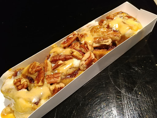 Counter-serve chain serving cinnamon rolls plus other baked goods & specialty frozen beverages.
