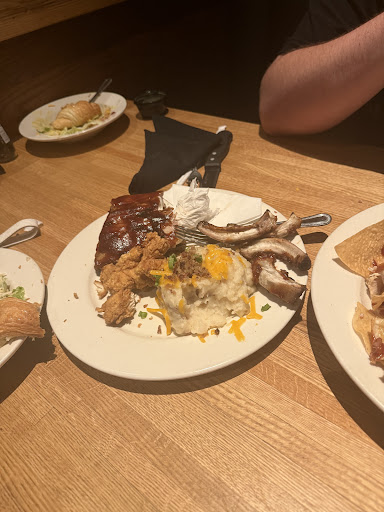 The manager brought the caesar salad and basically threw it on the table and then just walked away. Then we got our entree and the other salad. The ribs had hardly any meat on them and the chicken tenders were very dry. The salads were pretty good. We never got out appetizer and when we mentioned that to our server, she never even gave us the chance to say we no longer wanted it. She just turned and put it in the system then walked away.