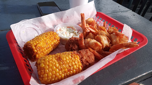 Read moreExcellent shrimp tacos and She Crab Soup ang Gumbo. We went back after 3 years wanting to relive the same good experience as before. Not to happen. First of all it was hot and we had to share a table with another couple. We should have gone somewhere else. When we say the prices were more once there than on line. I wanted grouper. But the dinner was for Grouper was $32.00. Not gong to pay that much. So I Chose Blackened Mahi Mahi. Fish was very thin and not very flavorful. Mashed potatoes were not hot and nothing special. Thought there was suppose to have cheese and bacon and onions. No cheese or bacon just onions. The coleslaw needed more mayonnaise. Dry and tasteless. My daughter ordered fried Shrimp. sent there suppose to be batter or at least flour on fried Shrimp. It was like they rolled shrimp in the bottom of a bowl of flour Without making some more fryer mix to fry Shrimp right, The fried corn was not hot and no butter or anything was served to put on corn. We should have talked to server about our orders especially the shrimp. But the restaurant was to busy and we couldn't get her attention. And to top it off our bill was nearly $100 and we drank water. No alcohol. Look at shrimp below .Do you see any batter or flour? Having paid that much for food we should have been stuffed like pigs and fully satisfied. We left wishing we had left after seeing menu prices....