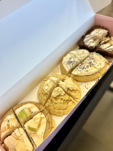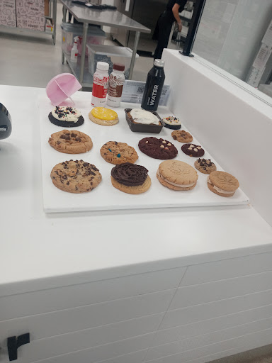 Read moreThe inside is SUPER clean. I will say, for as cute as they seem online, the experience was a bit impersonal. They have a little display with the cookies of the day available as you come in. You're supposed to go in one of the lines on the right to a kiosk and order on the screen. You have the order option of 1, 4, 6, etc. and then once you decide on the amount of cookies you would like it allows you to select the flavors. The prices seem a bit high, but they are rather large cookies. I'd say 1/4th of the cookie is the portion of a normal cookie. The chocolate chip is good but not amazing. Maybe it's because we ate them later after they had cooled. The birthday cake one was really good, but mostly because of the icing more than the cookie itself. It's better than store bought cookies. I would recommend trying because I think it's probably a personal preference thing. I have plenty of friends that are in love with...