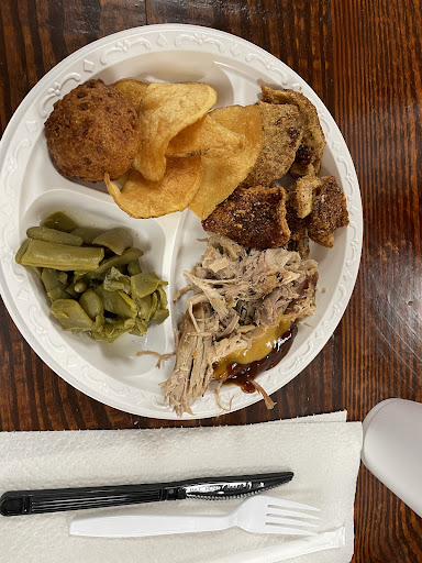 I was told that the food here was great and true to form, Dukes BBQ didn't disappoint. This was Southern Comfort Food at it's best! Home cooked no frills, no foo-foo-lah, just stick to your ribs eats. I chose the savory onion hash poured generously over white rice, collard greens with smoked turkey neckbones, fried okra, Pulled pork with hot mustard vinegar BBQ sauce, and Crispy Golden fried chicken and a scoop of the smoked sausage rice. If I wasn't in good company, I would have gone for seconds or thirds. Our friends were raving over the hush puppies, onion rings, sliced beets and coleslaw ( I was too afraid the main items were not going to fit on my plate so I didn't get any) Everything was well seasoned and well cooked. Wait staff was friendly, polite, attentive and kept a watchful eye on the food and supplies so no one is left there standing around waiting for utensils, cups, ice, etc. They also kept the buffet line clean of spills and waste. I highly recommend this Outstanding BBQ restaurant. I plan on returning in a car so I bring home...