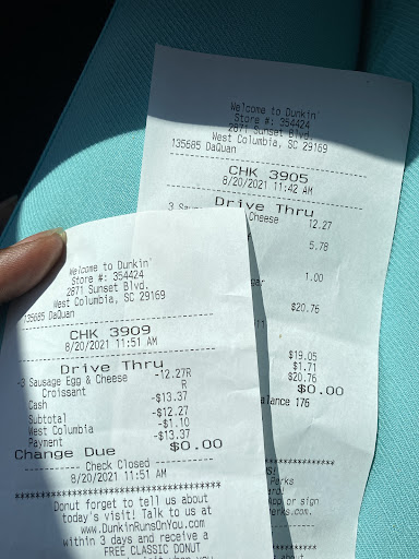 Ā Ā Ā Read morePassing through Columbia and placed a mobile order to grab coffee and breakfast at this location. I pulled up to the drive thru and saw a vehicle in front of me pull around the corner to the window. I waited at the call box for 3 or 4 minutes with no reply. I pulled around to the window and waved at an employee. The employee opened the window and told me they would not be open for another hour or so and shut the window in my face before I could reply. It was currently 6:55 am on a Sunday... That's funny, because the hours on the door and Google (updated by the business 4 days ago) all say this location opens at 6 am. What happened to the mobile order that I was able to place through the app?!! What Dunkin' opens at 8 am?!! The employees were all hanging out in the dark inside the store an hour after they were supposed to be open. Suspicious, if you ask me. I had to contact corporate for a refund. I drove next door to the Bojangles that was open and got a Cajun filet biscuit and coffee instead. You should...