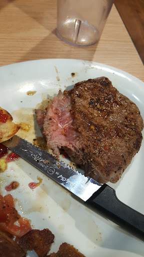 Steaks came back out and guala two new super then completely different steaks lol I had a 6oz these where 3oz lol I was like can I speak to an manager , be for the manager came out a cook by the name of POP told us hevwas sorry and don't let this be ur last time coming . The owner came out and apologize. Sorry in...