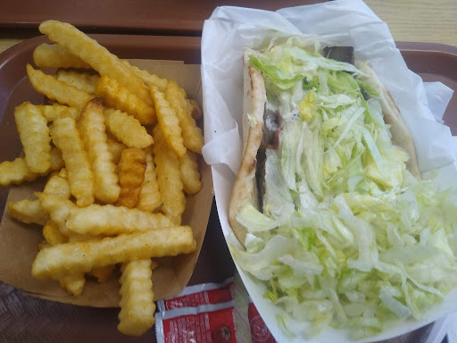 How this place has the rating it does I will be eternally mystified. It is pure GARBAGE. I will go out on a limb here and state boldly that ANYONE who thinks this is even a passable Greek restaurant has either never had actual Greek inspired food or dumpster dives to save money on the food bill. Truly the WORST Greek food I've ever made the mistake of ordering. First, the outside of the restaurant smells horrendous. I don't know what it is, but it's truly disgusting. That's your first warning. Second, we walked in and the restaurant is filthy inside. Clearly they have not deep cleaned ever and probably have not even wiped down in a very long time. Look into the corners, you won't like what you see. Third, the greasy looking 30 something guy working the counter looks like he hasn't showered in a seriously long time... Fourth, the prices are about $2 too much on everything you order. Fifth, we ordered food for two people (gyros and Greek fries) and it took over 15 minutes and we were the next order up. The counterman painstakingly wrote down every detail before he ever so slowly turned to the swarthy man in the back who ever so slowly read the ticket, verbally confirmed the ticket, and worked even slower to actually start the painful process of making the food. Keep in mind, we ordered right off the menu- nothing special whatsoever. Sixth, after 18 minutes we finally got our food and it was garbage. The Greek fries weren't bad, but the gyros were terrible. It was the preformed frozen/canned meat sliced and nothing else was fresh either with the sole exception of the tzeki sauce which was homemade and fresh with large bits of cucumber throughout. The gyro was chewy, bland, and slop. If not for the fries it would have been a complete loss. After 30 minutes total time spent and over $30 spent we were offended for all the Greek people who may be mistakenly associated with...
