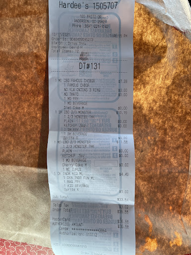 Ā Ā Ā Read moreThere's a reason why Hardee's rarely has much business and this establishment is a prime example. If it wasn't for the interstate traffic, they'd probably be closed. Tonight, as the only person in the drive-thru and possibly at the restaurant, I ordered a Frisco meal with no mayo. I drove to the window, had a short pleasant conversation with the lady where I paid and waited. Shortly after paying, someone else came to order and the lady asked me to pull forward so the next car could pay and that someone would bring my food to me. After doing so, the second car came around the corner and appeared to do the same as I, with them paying and then pulling into a parking place. When the food was brought to me, I should have checked, but as I was hungry I drove home (about 15 miles away). When I sat down to eat, I discovered that my Frisco burger was a 1/3 pound burger, heavily coated in mayo. I looked at my receipt, and it said 1/3 burger (- mayo). So two things went wrong. They entered the wrong item but failed to make it without the unwanted condiment. As it would be at least a very inconvenient 30 minutes to be corrected, I'm giving this place an honest review instead. They earned it.