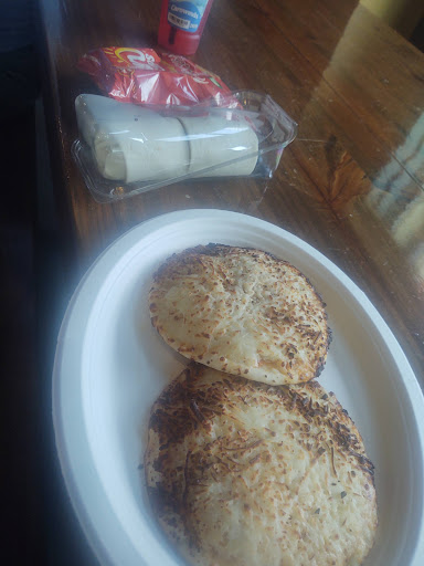 My husband got the burger and fries which he said were good. He also got the regular pizza which he said tasted like something you'd get from a high school cafeteria. Edible, okay, but not amazing... Lastly, he got a wrap which he said was really good - it had lettuce, cheese, and meat in it. The lettuce was crisp and the inside wasn't soggy (which can be a problem with wraps).