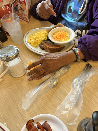 Read moreUpdated: 02/28/25: Was looking for something different for a Friday night date night with my wife. Had plenty available seats. We ordered fried picklesthat when they were brought to the table was a 1/2 order of pickles and the other half fries. They were all good and hot, but I ordered pickles. The eggs, pancakes, grits, sausage patties & toast were all good and hot. After our food was services we observed the cook sneezing without covering his mouth. Also, noticed on our way in there was a sign that stated a $0.50 surcharge for each egg ordered. :( The price was a bit expensive to be huddle house/waffle house type restaurant. Out bill was $48 before tip. Fried pickles $7.79. Drinks were $3.59 each. Ouch. Oh & coffee $3.29. For the service & atmosphere, seemed a tad high. It was something different from the Friday night waffle house or cracker barrell Friday nights. The best I can say is make sure you eat all your eggs -$2 surcharge. :)