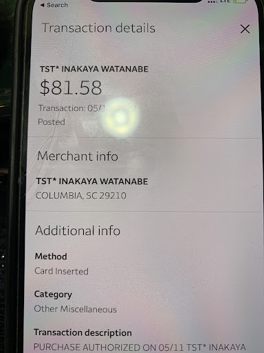 Read moreA little background on us, we have recently moved to SC from buffalo NY. We have spent many nights eating at different "Japanese"sushi restaurants.My wife and daughter and I were very excited to try this restaurant because of all the great reviews. We were seated quickly and everything was living up to the hype. The tempura appetizer was good,a little greasy but maybe their oil wasn't up to temp as it was 5pm(their opening time). We ordered three sushi rolls and then our entrees. We were quickly served our miso soup and house salads which were both as good as any other that we had had(yes, we have had bad miso) and then my daughters entree came out.(bento box) it looked good,but hers was the only entree to come out. Minutes went by and just her entree. Then, after 5-6minutes my entree came out(ribeye steak ordered med-rare came out well done) still no entree for my wife. When I asked about her dinner, I was told something about different meals at different temperatures and wanting things to come to the table at the correct temperature. By the time my wife's entree came out(3 minutes later...ramen noodles with shrimp pieces) my daughters dinner was cold, mine was Luke warm and my waiter was not helpful to my concerns over the timing. Then our sushi came out. California roll( bland but not terrible) firecracker roll(very fishy spicy tuna)and Godzilla roll(deep fried but not a light tempura, a dense heavy bread crumb crust,swimming in some sort of sauce) Pros: staff was very friendly Cons: all of the other reviewers who think this is a good Japanese sushi restaurant Damage:$80 ugh:( In closing, if you want an idea of how the quality of your meal is going to be, just look at the...