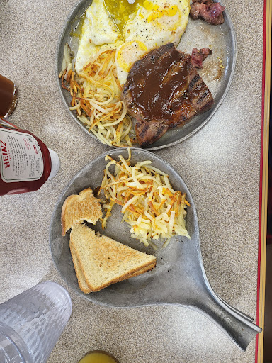 ย ย ย Read moreI'm giving a one star because I have to in order to share with everyone my husband and I's experience here. After a long day at work, my husband who is a truck driver, took me to eat at the Iron Skillet to enjoy a nice meal together, unfortunately this was not our experience. After picking our own seats we were greeted by one waitress who introduced us to our waitress for the evening. Well our supposed waitress for the evening never came back to our table. The original waitress served us if that's what you would call it. Her service consisted of one refill then after the plates piled up she asked if we were "doing ok " I then asked her if she could remove the used plates which she did. That was all we saw of her other than when she came to give us the bill with a reminder to "pay your server". On top of the bad service here the food was not worth the cost, nor was there a decent variety. My husband and I recommend that you spend your hard earned money somewhere else where the service and food...
