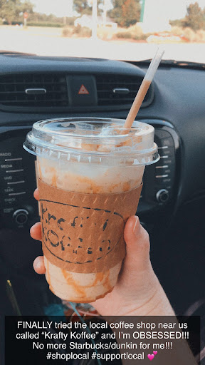 Read moreThis place blows Starbucks out of the water! It's easy to support local when they are so much better at providing a bigger variety of coffees, better service, and locally roasted beans. The staff is always so friendly. They have a great rotating selection of seasonal flavors and the variety of freshly roasted beans keeps us coming back. They also give you the option to grind the beans, but we enjoy them more by grinding them just before we brew each morning. Highly recommend Krafty Koffee, and pickup some of their "pot head" merchandise while...