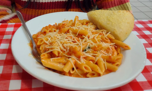 Ā Ā Ā Read moreWe were passing by and stopped at this place. Nice little place in the outlet mall area. Was easy to find parking. Our server was nice. We didn't have to wait to be seated. They had lunch specials too. We are vegetarians so were looking for vegetarian options only. We ordered veggie pizza and penne alla vodka. The food came out in decent time. Pizza was very flavorful. But we suspected meat in the pasta dish and asked the server and she said it didn't have any, only onions and tomatoes. But when we found pieces of meat and showed it to her, she realized that it was indeed made with bacon in it. We should have asked beforehand but from the menu description it sounded like it would not have any meat. Our server was able to switch the dish to a vegetarian option and they were able to bring the other dish out quickly. We were happy with the food and service. just keep in mind to make it clear about your dietary preferences even if the description...