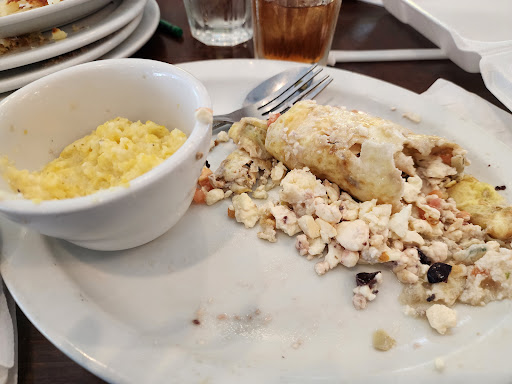 LENGTHLY Wait times. It was an early Sunday morning and I was there only with 5 other tables. We were all waiting over 25m for our plates. Then they came randomly. I got my French toast (but no eggs or bacon), the next table got the momâs pancakes, but not the dadâs eggs. It seemed like they were all over the place but not focused on one table at at time. Which was my suggestion. FOCUS ON ONE TABLE AT A TIME!! I disliked my cold bacon and piping hot grits. Thatâs a FAIL! A big one. Focus on one table at a time so everyone can eat together and enjoy that experience at once. Then move on to the next. Especially if short staffed!