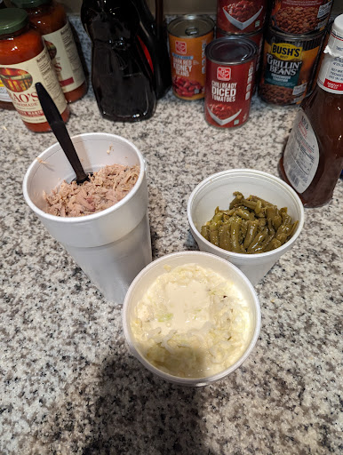 Read moreA couple months ago me and my wife stopped here for a Togo order. We ordered the family combo. Mistake #1 was no smoky smells in this BBQ restaurant. #2 when I saw the gentleman fill my coleslaw container from a giant bucket, from what looked like a Sysco product, the BBQ sauce was so bad that I used my Baby Rays instead. I knew I was in trouble after all that. Now, I'm a Chef and former kitchen manager at a BBQ restaurant from VA, and this restaurant did not give me a BBQ restaurant vibe. Nobody, except the girl who took our order, was very happy. Not one smile from behind the counter. Now if I didn't know better, I would say there's nothing there that indicated to me that any protein was being smoked on the premises. I may even venture to say that as flavorless as the food was, it may have even been from a bag, a Sysco product. The entire meal was packed into quart or pint deli containers instead of 9x9 foam 1 comps or 9x9 3 comp containers. Very disappointed and will not be returning at the $36.00...