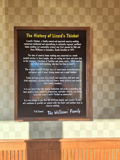 Lizard's Thicket offers a rotating entree each day, and this location has become especially bad about running out of turkey and dressing on Sundays and meatloaf on Wednesdays. We have been disappointed more than 50 % of our visits there in recent months, so much so that we stopped visiting that location for a while.