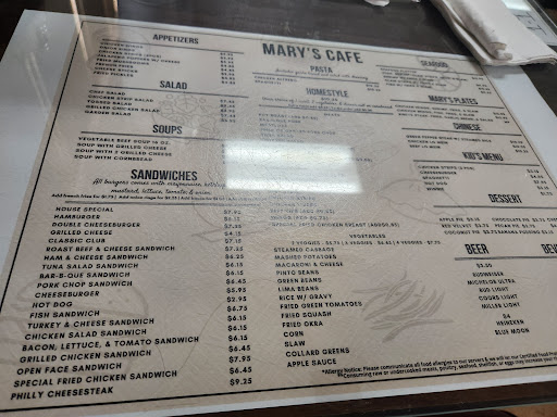 Read moreI've have been eating here since i was a kid. I am very happy for the lovely couple that owns the establishment, it has done well enough for them to move from the old building across the road that sat maybe 20 people to build their own floor plan adjacent to to older smaller complex. I personally think the food is fantastic. They have one of the best 3 burgers in Rock Hill. THE PRICES ARE GREAT AS IS THE AMOUNT OF FOOD YOU RECEIVE. I never leave short of being miserably full. The service is is fast and helpful. I've never gone without and never had anything to complain about (they did forget the chili on my burger once but the girl offered to take it back to the kitchen and put it on there but i told her not to worry about it, she scratched the chili off of my ticket. the next time i came in i sat in another waitresses section. the waitress from my previous visit found out what i was getting and threw some chili on it for free!) they offer sever types of food (again all at a great price) and its all good. I HIGHLY RECOMMEND MARY'S CAFE TO ANYONE IN THE...