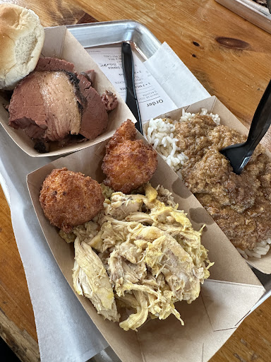 Let's talk about the food, shall we? It's as if the culinary gods themselves descended from BBQ heaven and blessed each slab of meat with a divine kiss of flavor. The pork hash? Amazing, simply amazing. So amazing that I had to bring some frozen pork home. The brisket? So juicy, it's like biting into a cloud of carnivorous delight. And don't even get me started on the pulled pork—it's like a slow-cooked symphony of savory perfection.