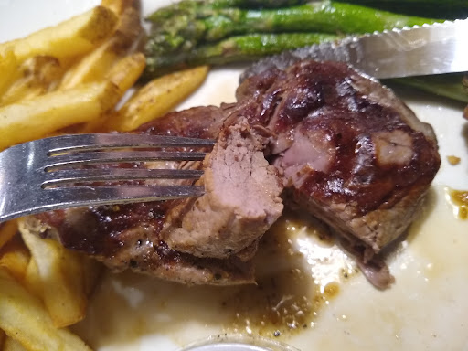 I ordered the Cajun sirloin and I didn't like it. (Just wasn't my taste, which is absolutely no fault of the restaurant!) When they served my meal, they asked me to cut into it to ensure it was cooked to my liking. In a hurry, I did, and at first it looked fine. I had ordered medium, and I saw some pink so I figured it was fine and told the food runner that it was good. Once they walked away, I cut into it further and could actually see that it was EXTREMELY rare - actually cool in the center.