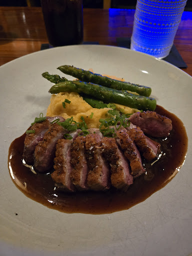 Read moreAs you enter this wonderfully intimate restaurant, you are greeted by three lockers of dry aging meat. Two full of beautiful ribeyes, making their way to 45 days, and one filled with salmon, being dry, aged as well. Melissa was a fantastic server as we ate at the bar. This is our second time dining here so we switched it up a bit and primarily ordered small plates to what accompanied by one entree to split as well with a bottle of red wine. The wine menu is vast with much detail. Unfortunately, the online menu does not appear to be the most up-to-date one so I cannot give you the exact name of the photo with the octopus, thin sliced, but it is in the salad section and was a very fascinating serving of octopus. Delicious! The special of the evening also not on the menu itself, but the appetizer feature was the burrata cheese with olives, extra-virgin, olive oil, dried tomatoes, pesto, and large leaf basil. The olives were particularly divine as they were not super briny has most all Lazare and I enjoy. These were rather delicate and flavor, and the burrata was out of this world. The foie gras with lingonberries was as much art to the plate as it was the the palate. Tuna crudo and shrimp rounded out the small plate list for us. Our entree(on current menu but not online also) was the pork raghu bolognese pasta. This was our one repeated dish from our first dining experience as the quality of it reminds me of my travels to Italy last year. There is definitely time that is put into this dish based on the flavor. The dessert chosen was my least favorite of the evening, but a unique presentation nonetheless. Called the bomba chocolate fig(I may not have that title correct) which is served with a small glass of port and a detailed instruction card. While the port was quite delicious, the dark chocolate enveloped fig to me liked anything exciting or repeat worthy. However, I am looking very much forward to try and the other desserts during our next experience as well as the...