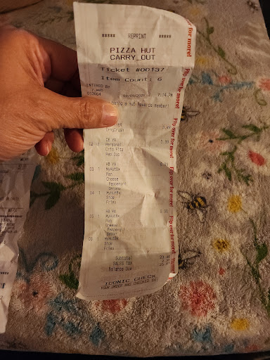 Read moreHorrible I went there to order the personal pan Pizza Hut box 2 of them around 12 pm and waited over a hr and 30 mins for a simple order the manager I would give a negative star but the cashier at the register was nice the fact the manager came outside to tell me there was no more personal pan pizza and didn’t kno why the cashier rung it up lets me know this place do not communicate with the workers then after the order was done only one hut box was prepared after waiting for the first hr then had to wait longer because being cheated out of the hit meal since there was no more personality pan we order the calzone and they gave half a calzone and thought it was ok to short us so I went back in to talk to the manager and she had the nastiest attitude out of this world I never thought it was hard to make two simple hut box between the wait and being short a calzone and had to wait even longer she should have gave us more for the wait the attitude the miscommunication but the cashier was trying to help as much as she could by bringing the food out which is a little helpful I order the pizza from jump because my grandmother have to eat by a certain time and to take care a customer this way is bad business they need to do better this is not the way you treat people...