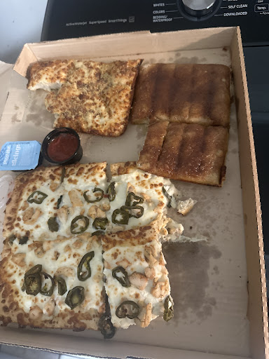 A younger gentleman that had been waiting from before I got there was called up for his order. He had ordered something in a small box, but had to ask for his fries. Then had to ask for his drink. Then had to again ask for his Parmesan shaker. As he turned to leave finally having all his items (it was now 5:25pm, I arrived at 4:30 and he was there before me), the woman at the register very rudely and accusingly yelled at him “excuse me, are you going to pay for that???” He came back confused, and she repeated “you gonna pay for those 2 Sunkist???” He put his stuff on the counter and said “I only have 1?” And she said “you need to pay for that and the shaker.” The manager was standing only 2 feet away and waited until the guy said “it was on the ticket” before the manager said “yeah it is. He paid.” And he was allowed to leave. I finally approached and showed her my ticket since I was now 1 of 4 people left waiting and 2 had JUST walked in, and she looked at it confused for a moment and then walked back to look at the tickets at the cut table. I said I had ordered at 4pm (it was now 5:30). I told her they had said one of my pizzas fell off the oven so I guess I had been waiting for a remake and I was unsure if it ever got remade. She pulled both pizzas from the hotbox and handed it to me just saying here ya go.