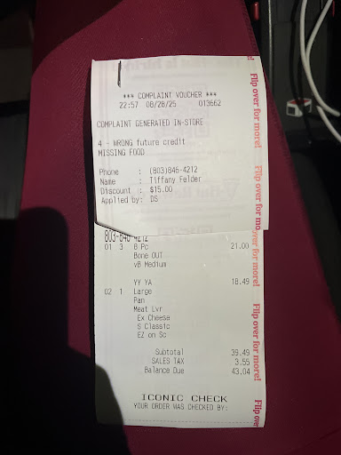 Read moreAbsolutely terrible. This is the third and last time I will be purchasing a pizza from this establishment. I placed my order in person to one of the shift managers named Walida. I requested a lot of tomato sauce not once but twice because of issues I have had in the past from Pizza huts dry pizzas. She did look back and stress to the guy, I guess was going to make my pizza, to make sure to put alot of tomato sauce on it. Got the pizza home and the first bite I took cut the roof of my mouth. I inspected the pizza and the was only enough sauce on it to be able to say that sauce is present on it. Called the pizza hut back and after being put on hold and the transferred to the call center then back to the store then put back on hold then transfered to the call center then back to the store and then to a person, I assume only has enough education to be able to push a button, tells me that she would let Walida know that my pizza had no sauce and she would call me back. I was just in the store 10 minutes ago and there was maybe 3 people in there. Why wouldn't she just pick the phone up and talk to me???? Well to sum up my experience I would suggest little Cesar's pizza to anyone that is considering pizza from pizza hut. I don't believe they are capable of making a ham sandwich much less a pizza. I would rate it zero stars if that...