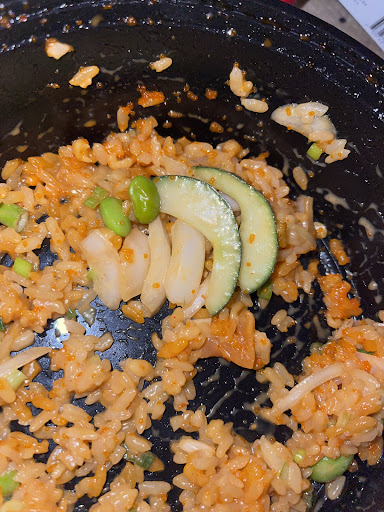 It's like Chipotle or Moe's Grill where you see the ingredients out in the open not covered, and I understand it looks appetizing and attractive to present the ingredients that way, but it shouldn't be so with raw fish. Any raw fish should be refrigerated or at least kept cold with a cover to minimize the loss of freshness. If you visit an authentic sushi restaurant like Inakaya or Camon in Columbia, you will see all of the raw fish in a refrigerated glass case on the counter to keep it fresh. Ideally, the fish should be uncut in a big chunk/block, and the server should only cut it in pieces (in cubes at this place) when the customer orders a menu item with tuna or salmon. Shrimp and octopus are pre-cooked, so it does not require the same degree of refrigeration.