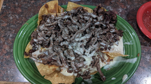 The portions are massive in comparison to other local places. I usually head straight for the fajita nachos when I go here. I included a picture which just doesn't do it justice since I forgot to add something for scale. The nachos I get come with steak, beans, cheese, and I have the onions and peppers removed. For $12 you get what looks like a 16oz steak cut into strips and laid across some of the most buttery tasting refried beans you will ever have. This pairs great with the slightly spicy queso cheese and warm chips.