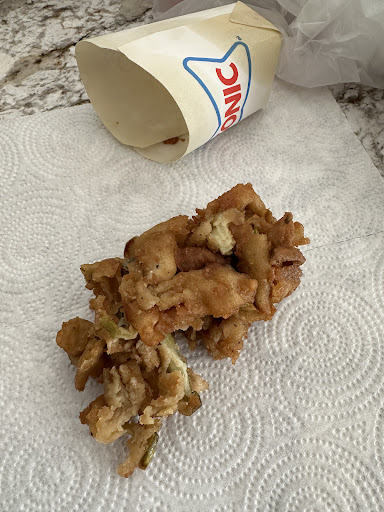 Read moreOrdered food on the app for my husband to pick up on his way home from work last night. He arrives with our pickle fries missing so I give them a call. A gentlemen answers and immediately says this is Sonics but to let you know we’re closed (they apparently closed early) and didn’t even let me say anything without hanging up on me! I called back and someone else answers and I let them know an item was missing and he knew exactly what it was, so I asked for a refund. Didn’t help me at all besides directing me to the app. So my husband decides to drive back as this isn’t the first time this has happened and to request a refund. Upon arrival they were closed but still answered him. The gentleman let him know he was sorry and they’d make him a fresh large. Manager I’d assume (older white guy) comes back with pickle fries saying they only had a medium, which was what we originally ordered anyways. He gets home and we open the bag to find this garbage!! What the he// is this? You can’t even tell what they were suppose to be. They appear to have been trashed (they were closed, remember) and after he went to get them or a refund, they dug them back out of the trash for us! You cannot tell me no different, just LOOK at them and see it. Yuck!! They also gave me ranch but no fork. I mean, how else am I suppose to eat my pickles with ranch when I can’t dip them and need a fork, with this gross mess. I’m debating on calling the health dept as I’m pretty positive if they were to look at the cameras, they’d find something nasty happened with these before they fed them to a customer. How you see them in the box is how I pulled them out of the bag. We in no way shape or form ate this garbage. Also, our other part of the order was stale, cold and gross. If they were gonna be closing min after we ordered, they should have canceled it instead of serving nasty, old food and pickle fries from the trash. Still trying to get a refund and have yet to do so. Just 50 questions and proof with some more proof… Moral of the story, don’t go back for any missing items as it’ll more than likely be the ones they tossed into the trash and dug back out! Absolutely disgusting!! Now we know why restaurants all over our country are closing shop. Bad quality food, yet, prices raising...