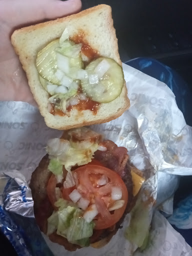 Read moreWell, we had an online order so we stopped in for that and I thought that it took a very long time for our food to come and when we checked in at the speaker, I asked for specific condiments that I had also checked on the app when I ordered online When the order out we did not have those condiments so we asked for those condiments again and he came to the car and yet again did not bring the correct condiments so that was a little frustrating. The milkshakes were very good as far as the atmosphere, it’s sonic so we knew what to expect. It was at least quiet because there was no one around us, customer service not most friendliest, but I wouldn’t say it’s a Knogo if you’re hungry and you got your condiments in the car lol...