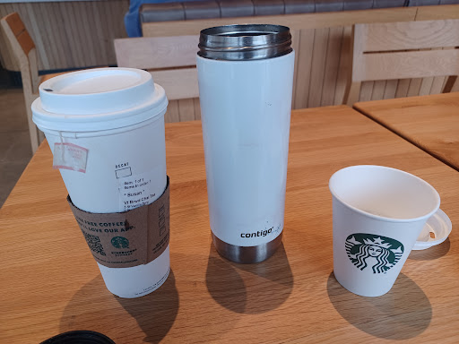 Read moreI have stopped at this particular Starbucks several times since it has been open, and my visits have been mediocre. There would be times the baristas appeared as if they did not enjoy their jobs. However, I always received my order in a timely manner and the quality of my order was always great. At first, my original ideas and thoughts on the atmosphere was just mediocre. In contrast, my visit today, was the best experience I have ever had with Starbucks. Luke, the barista Serving me today was the sole reason my visit went so well. He was very knowledgeable about the current events within the company itself. He was super kind, yet professional. I felt he was a genuine person who truly enjoyed his job. Luke never hesitated in his responses to my questions pertaining the type of drinks Starbucks provides. He knew a lot about the organic food products Starbucks sells. I was very impressed with how well he knew the company and products sold. It made my experience worth every penny I spent! We had a great conversation and I enjoyed learning about Starbucks and the future changes Starbucks plans to undergo. I will certainly be back by and I Hope to see Luke! Starbucks should be proud and honored to have an amazing employee as himself. Everyone working today seemed to be in a great mood! My latte was perfect! Two thumbs up for this...