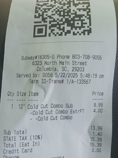 Read moreHad I looked at the reviews I would jot have ordered here the young lady had a very nasty attitude when I was telling her what I wanted only to tell her the meat she was giving me I wanted double and I let her know that ..LOOK IM ONLY SAYING I WANT DOUBLE MEAT she looked shamed as she should have been after I set the tone to her unfriendly self she was okay afterwards but NO TIP..the tip is to be more friendly and not be so snobbish next time I will visit another establishment no matter what was just getting lunch after leaving the piggly wiggly..the subs were okay but very heavy handed with condiments...Hope she has a better day with this being the 1st day...