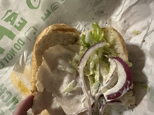 Iāll start by saying this is usually my favorite Subway near me, however, not at night when ordering it thru delivery service. This has happened several other times and tonight has been the last straw! I ordered a 12ā turkey w/American cheese, add bacon, along with my choice of veggies. I also ordered (4) cookies and chips. What I received is totally different. Lazy? Out of ingredients? No attention to detail? I donāt know. But my sandwich had barely any turkey, like the least I have ever seen before. No cheese at all. No bacon that I paid extra for. No pickles. No banana peppers and Iām nearly positive it didnāt have the oil and vinegar and if it did, they must have put a mist of it on there. The bread tasted dry and stale as well. I was also missing 2 of my cookies. I ordered 4 and got 2 of the ones I chose and 1 that I didnāt. They came all broken up, missing pieces and looked like my 2yr old was previously handling them or something. Maybe the driver? Idk but the trash they went!! My chips were missing too. This was $23 in food from the restaurant not including feeās and tip to 3rd party. I contacted the delivery company, however, they didnāt want to make it right this time due to having to help me out the last time I ordered from here. This was hands down the worst experience from this location though, as I didnāt even receive what I requested and paid for!! Waste of money and I will no longer be using this location for 3rd party delivery, as the workers just donāt care. They prepare and give you what they want, not understanding the customer is paying for this. Poor night management. I technically deserve a refund for this mess. Maybe the owner will make it right, or maybe not. But hopefully something is done as this...