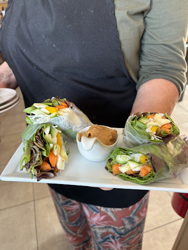 Read moreFriends: I highly recommend Sun Belly Cafe! This little Vegan Restaurant is a diamond in the rough. We were warmly called out a welcome when we walked in the door, with an advisement to pick a seat and they'd be right with us. We felt right at home. We soon learned that this restaurant is locally owned and operated, as It was truly a pleasure to meet the owners, who are also the Chef and Waiter. I chose the Summer Roll as my appetizer while my husband opted for the Spinach Artichoke Stuffed Mushrooms: both were thoughtfully prepared and tasty, however, the stuffed mushrooms were fabulous with the dimensions of flavor surprising! My entree was the Thai Butternut Squash Soup complimented by a Corn Muffin with vegan butter, which was all absolutely delicious. My husband chose the Sweet Potato Chick Pea Curry, also complimented by a Corn Muffin with Vegan butter. My wonderful husband was a little out of his element at a Vegan Restaurant; It was an act of love for him to accompany me and he did with such grace. He was not a fan of the curry and I was too full to try it at the time, so, we took it home for me to try for lunch the following day. Our dessert choices were the House made Apple Cobbler a la mode, Peanut Butter Cookie and a Buckeye, all of which were very good. While there, my husband smiled and said "I know you...right now, you're thinking of friends to bring back here." We both laughed because of course, He is correct. I will definitely return with friends.