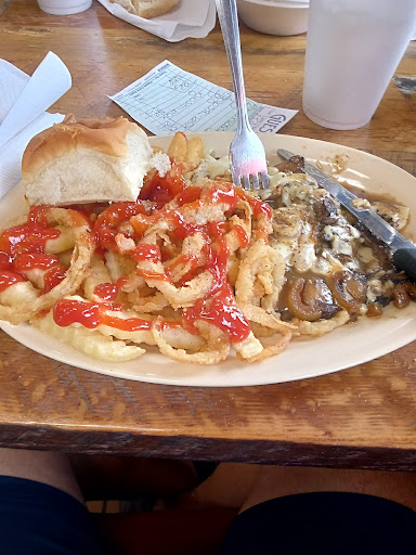 They have a cleared distinction in having the single best onion rings that I’ve ever had anywhere. Their french fries are crinkle cut that are crunchy in the outside and like mashed potatoes on the inside. They will mix them half-and-half with your onion rings as a side if you wish.