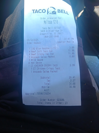 Read moreCorporate really needs to take a look into this location. A little over week ago I came through the drive-thru only to be told that they were out of ground beef. Then about four nights ago I came through only to be told that their system had already been shut down and that they were no longer taking any orders but they did not close for another hour or so. I went back the next night and they were open however my tacos had about 1 tablespoon of ground beef about four pieces of lettuce and a Sprinkle of cheese it didn't even take up half the taco shell and the shells were hard as a rock they were stale. Now tonight I go by there at 11:20 and they do not close until midnight only to be told that they are closed because the other guy leaves at 11 and that only leaves one employee and he can't do everything so he has to close early. This used to be the best location and I live in Travelers Rest so I drive just to this location because normally they are a lot better than any of the other ones but unfortunately due to whatever reasons this one has gone downhill so terribly that I probably will not come back for a very long time. The male employee that came to the window tonight was at least nice. He said everyone has been cursing at him and flipping out on him. But there was nothing he could do. They need to hire this man...