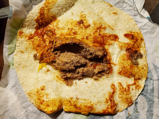 Read moreFirst i walked in and the floor was wet as heck right in front of the door. They put a wet floor sign there down but right when you walk in the door i guess I just wasn't expecting it and hate if someone slipped down there because of it. But then I had to wait for the cashier for 10 minutes or so just waiting to place an order while they attended the small line of cars they had accumulated. They were definitely understaffed but the few that were back there didn't seem to give a fudge and just had this slow motion kind of pace like molasses in January but I get my order in and turn to look for a place to sit and the restaurant is filthy. Unclean tables, chairs floors (despite the only mopped place being right in front of the door) boxes of straws or lids or whatever sitting everywhere and this giant friggin air conditioner leaking all around it right on to the two biggest tables in there. Maybe if they were very busy but there were only 2 guys in the restaurant besides me. I was there only customer when I put my ticket in so my food came out pretty fast, probably around 5 minutes. They probably aim for less time but I can't really complain. I also have to admit when I got that crunch wrap I could tell it was made with love best made crunch wrap supreme ever plus crispy fries very good. +1 star. The line they had right after I ate was pretty bad on the drive thru and the cashier so bad that the guy that walked up behind me after I took my order sat down next to me and I received my food, ate it wrote most of this review and left and he still didn't have his food so dang. He was also kind of sketchy, weirdly muscular old man that sat down and put a tied up zip lock bag with white powder in it. Probably not cocaine but what did you do bring your own salt ? Weirdo anyway ya pretty...