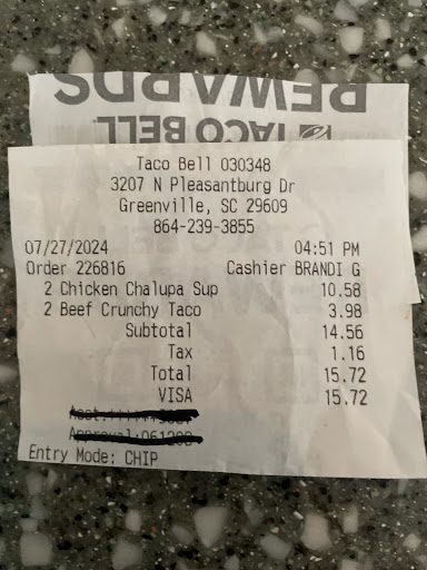 I usually grab Taco Bell a couple times a month as a cheat meal. This location on Pleasantburg, though, gave me one of the wildest, most frustrating experiences I’ve ever had at a fast food spot.
