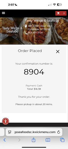 Read moreI rarely write reviews but I had to share my bad experience. First red flag, nobody ever answers the phone. Called and called until I finally got through to politely explain my messed up order. There was a slight communication barrier so I decided to drive back down to the restaurant. I ordered whiting fish but several people tasted it and it clearly was not Whiting. I explained to JIMMY ZIN that this is not what I ordered or expected. I did not want my order redone just my money back. 2 pc whiting and a side was $8.85 but JIMMY ZIN only offered me $2 as compensation. If he would of said mam I'm so sorry and I will refund you for the fish I would if been partially satisfied. Sad part is I ordered online and gave a TIP. Trying to help support new businesses... On a positive note my son said the wings was tasty. The organization and customer service was not the greatest but can be improved. Have someone to man the phones... Hire an assistant manager to help deal with the customers. Customers and especially repeat customers is what keeps a business going. I can't recommend a business to potential customers if I had a bad experience. JIMMY KIN I pray that your customer interaction improves but I sadly will not be returning...