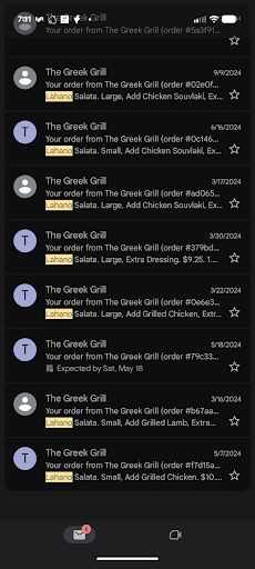 As a loyal patron of The Greek Grill for several years, I am deeply disappointed to be writing this. My go-to order has always been the Lahano Salata—in fact, my order history shows I’ve ordered it at least seven times in the past couple of years.