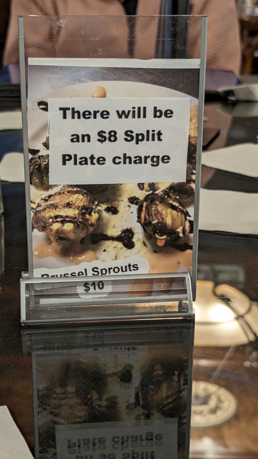 My friends and family have dined at “Twisted” many times over the years trying to support local businesses given we live right down the street. We haven’t been there in a few months, but I was greeted with a new sign on the table this visit, an $8 sharing charge. My wife and I normally share a pasta dish (its large), maybe get an extra salad and drinks, so seeing a sign stating I would be charged extra started the night off on the wrong note. I understand some restaurants have a sharing fee, ie Hibachi, but in those cases you split the protein and both get a portion of rice, vegetables, salad and soup, no issue with that. I asked the waiter if the $8 sharing fee came with a larger portion or extra bread or a salad and was told no, it’s the exact same meal, just 8 dollars more. Now my common sense kicked in and I questioned this, he seemed to care less about my concern.