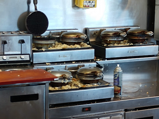 Just visited this Waffle House location to redeem free bacon order that expires today. There were 4 employees behind the counter and only 5 customers. They barely looked up to acknowledge a new customer. This doesn't bother me but it's not friendly like WH usually is. I sat at the counter and two of the employees were chatting, one was cooking and another was just standing behind the counter. After a few minutes, the chat broke up, I was greeted and my order taken. I almost didn't stay because it was very dirty in the cooking area. I have pictures. Food all over the floor, trash overflowing and on the floor around the trash can. I went to the restroom to wash my hands and had to wait. The person coming out was a WH employee and didn't wash her hands. You can hear the loud dryer if it is cut on When I sat back down, I saw that she was the cook. Thankfully, she put gloves on to cook. Maybe she washed her hands in the kitchen, I do'n't know. I watched the employee cooking my waffle, clean some food off my plate with her fingers, scraping the plate and wiping it out. I asked her if she'd please give me another plate. She did. My waffle was great, my bacon arrived after I had eaten half of my waffle and it was great too. Please clean this place up. I love waffle house but not...