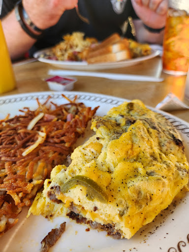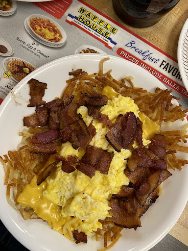 Read moreI went in to order takeout. It was pretty busy, but just getting my order in took several minutes. I ordered a sausage, egg, and cheese hash brown bowl well done with a blueberry waffle. This order took over 45 minutes to complete. I should've checked it before I left, but after waiting so long I was in a hurry. I didn't open it until I was already down the road, and parked for the night. Apparently, what I got was a single order of regular hash browns, scrambled eggs, and toast with a blueberry waffle that I watched the cook toss back and forth in her hands like she was playing a game of hot potato because she didn't get the box first. It was another several minutes to get someone to take my money after they gave me my food. I'm annoyed with myself for not just walking out with it, and that I tipped them on top of the takeout charge. I'm not sure how this is one of the more highly rated Waffle Houses I've seen as this is easily the worst I've...