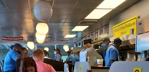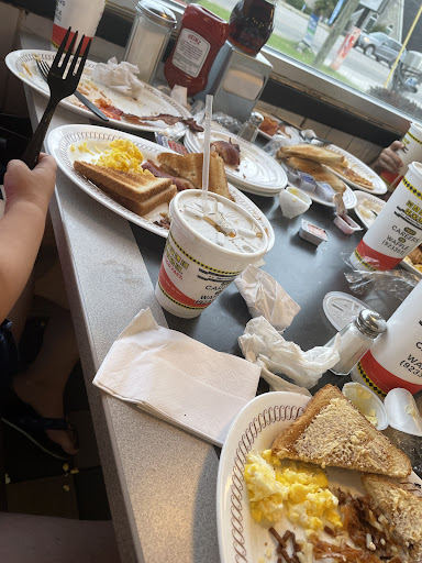 Read moreMy family and I went to the Waffle House on Hard Scrabble Rd Saturday evening about 6:30pm. We frequent waffle houses often, but came to this one as it was the only one serving Dine in. We walked in and all the employees were sitting at the table below with the clothes and shoes. Every table was dirty. Either still having dishes or not been wiped. THERE WERE NO CUSTOMERS. It was so dirty. We asked if they would please wipe a table off and they did after standing there a few more seconds. The waitress took our drink order and came back with our drinks in styrofoam cups. No biggie. Our food came, but we still didn’t have silverware. By the time our plastic utensils came, the food was warmish, but we ate. Our drinks were never refilled, and the other tables were still dirty when we left. The girl was on a FaceTime call as we checked out. Waffle houses are not known for being clean, but this was disgusting and the employees were just hanging out with their shoes off. 2 stars cause the food was okay. Please increase your cleaning and work...