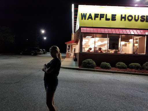 I have to give this a one star because there's not an option for zero! We are fans of waffle House but this one has about made us want to boycott all of them! There was no menu, to start, and then it took the server almost 7 mins to even come to us before we could even get them. (All her other 2 tables were already eating if that makes it better) then when we placed our drink orders my hubby ask for room in his coffee for cream and sugar, and received it filled to the brim. Waffles were burnt, if after you put syrup on and it still crunches in your mouth, says a lot. They were cold, and so was the rest of our food. We had a few pieces of bacon that was not cooked, then there was not condiments on the table. When asked for these condiments, we got an eye roll and the items chunked on the table. I could understand that if you're busy and rushing where that might be called for, but they were not! Then I watched the server cough heavily in her hand and then proceeded to continue handling food and drinks without waking her hands! My hubby is always known to finish his food, even if it's mediocre, because he likes to get his money worth. He couldn't even finish his food and left about half his plate due to it being unedible. Never will I go to this...