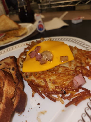 Incredibly slow service just to be given partially incorrect food. We ordered 2 eggs scrambled with cheese plates with toast, hashbrowns, and sausage, the hashbrowns were supposed to both be covered and chunked, and 1 smothered, but were served plain, left on the board in prep/kitchen area while server took several minutes to go find the grill operator, apparently out back. The eggs and toast were not given back to us until the hashbrowns were "corrected," however, the cheese was still cold and not at all melted when the now mostly cold food was given back to us. We ate our sausage and waffle, which had been delivered first, while waiting for the rest of the food, bc at least those items were hot and in front of us. We ate some of the now not at all hot food and asked for boxes. Will definitely drive the extra couple of minutes to the much better Stone Avenue location...